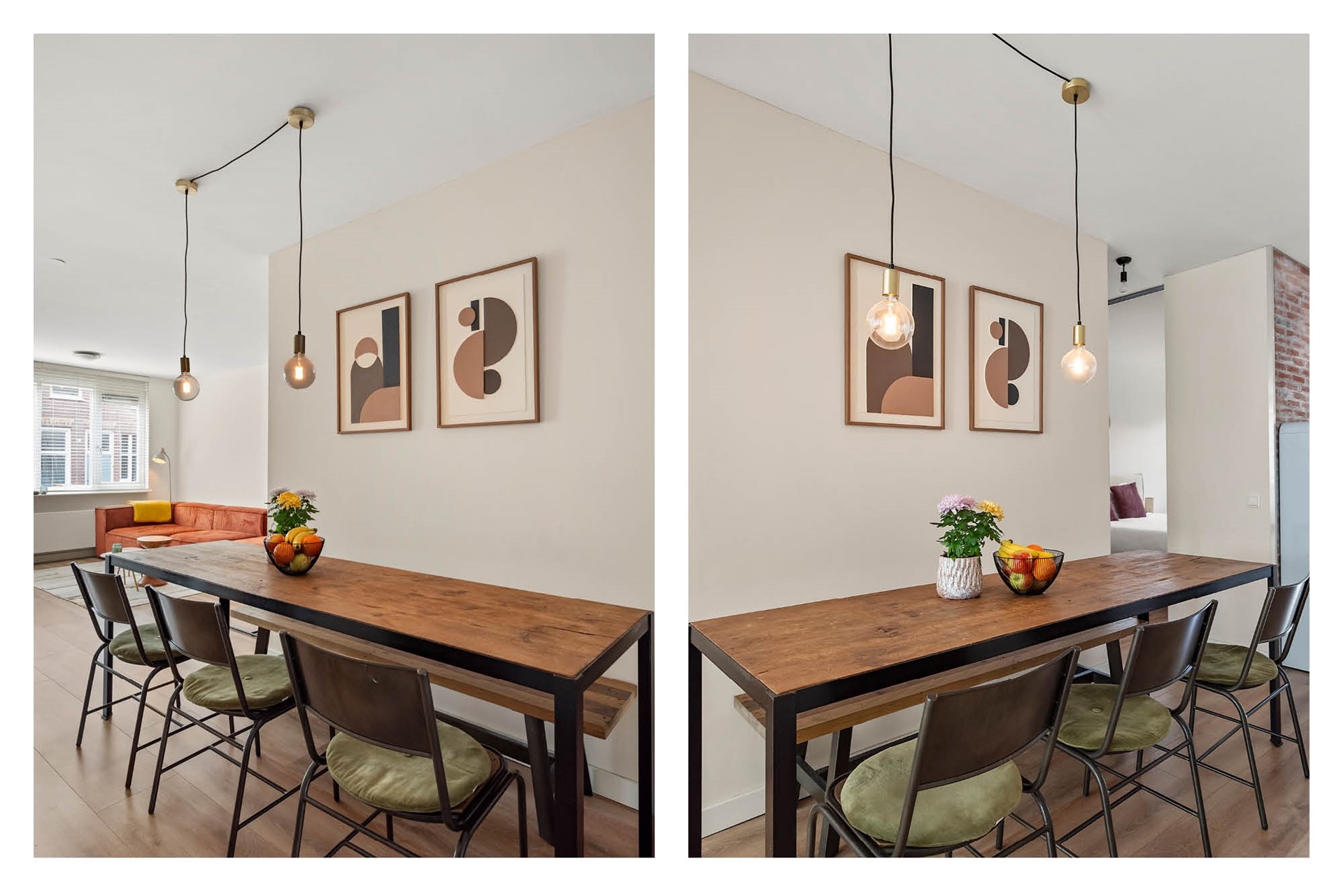 De royale woonkamer biedt volop ruimte voor een comfortabele zithoek én een gezellige eettafel om vrienden te ontvangen. Of je uitgebreid wilt dineren, een filmavond plant of gewoon geniet van een goede kop koffie, hier voelt het altijd fijn.